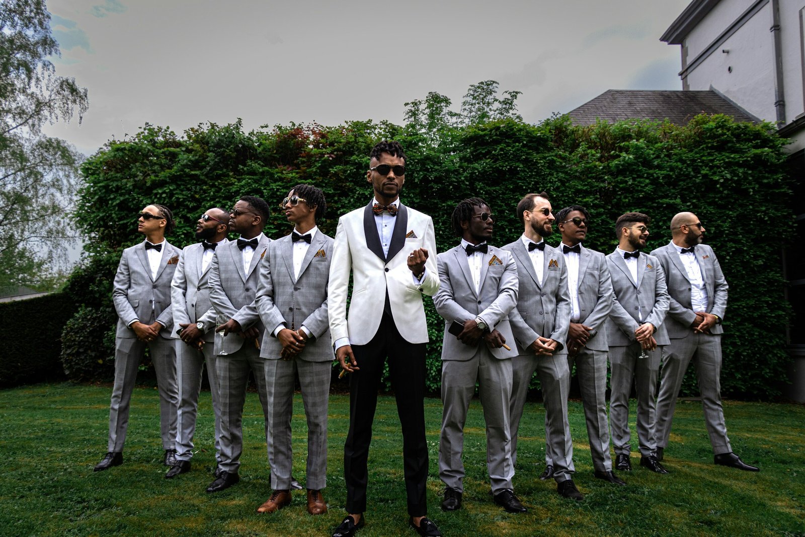 Our tailors can incorporate subtle design variations to distinguish the groom while maintaining a sharp and unified appearance for the group.